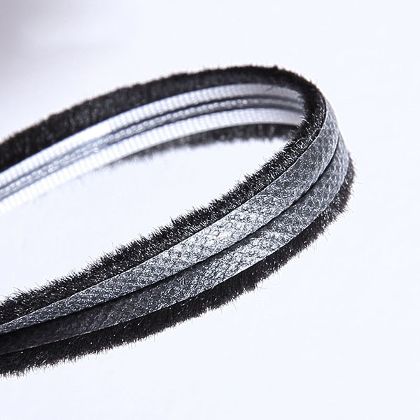 With the polypylene plastic piece in the middle of the ordinary weather pile strips, the plastic fin may be higher than or be equal to the pile higher, it is sealing property is higher than the conventional product far.